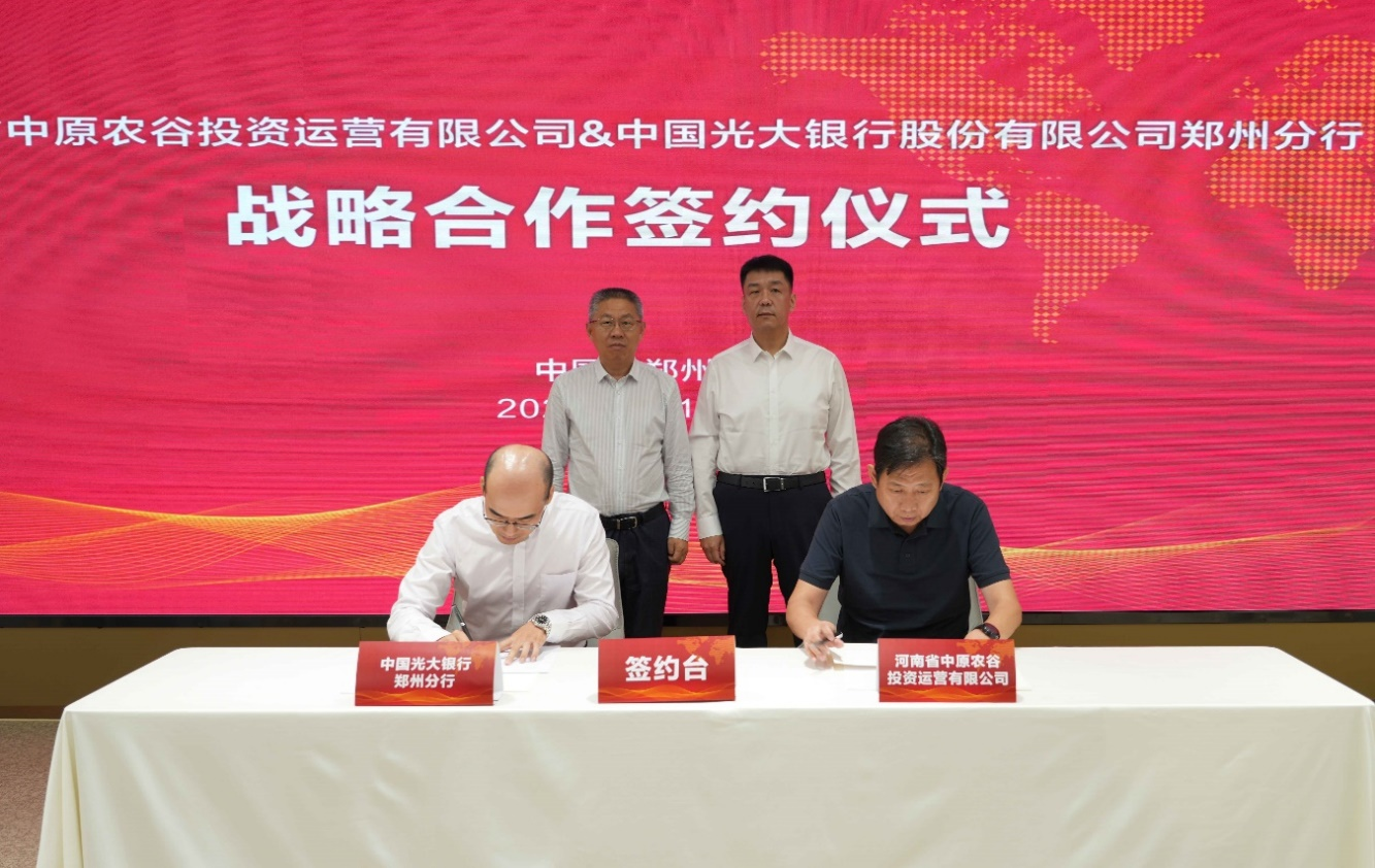 2023年9月15日,中原农投与光大银行郑州分行签订战略合作协议,约定五年内在综合授信、项目贷款和乡村振兴方面,提供50亿元资金支持。